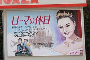 さらに、その全面を飾る看板には、映画ローマの休日のオードリーヘップバーンの看板がファンの心を揺さぶります。
