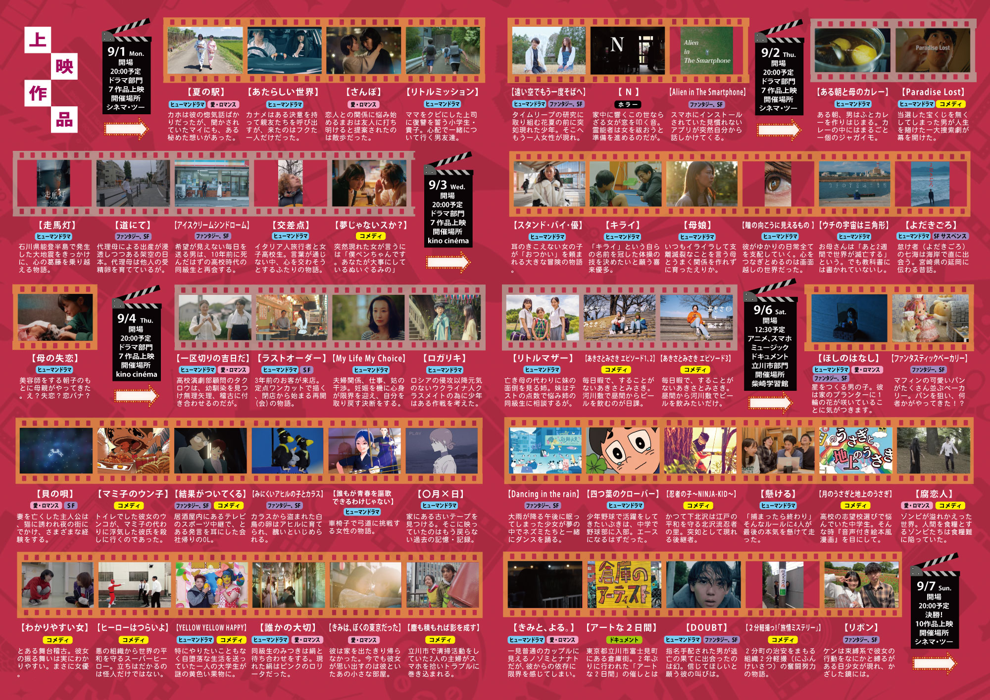 決勝作品の上映 9月7日(土)